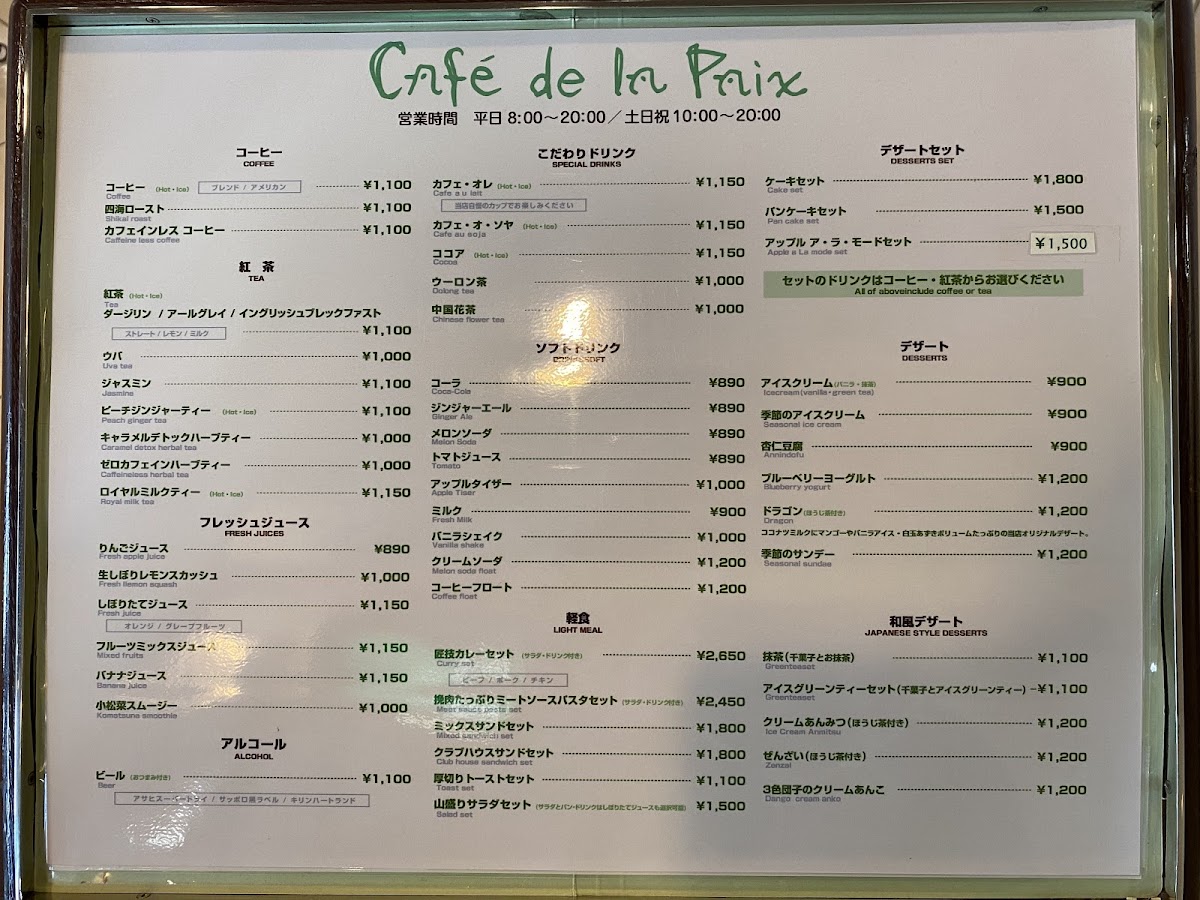 Here, you can indulge in unique treats like the 丹波黒豆づくし, showcasing a rich, milky soft-serve combined with seasonal delights. Every detail, from the classic marble tables to superb service, contributes to a relaxing dining experience. The cafe’s charming aesthetic, coupled with thoughtful touches, such as exquisite mini desserts, makes it an idyllic spot for leisurely meals or intimate gatherings. Plan your visit and immerse yourself in the tranquility of Cafe de la Paix—you won’t want to leave!